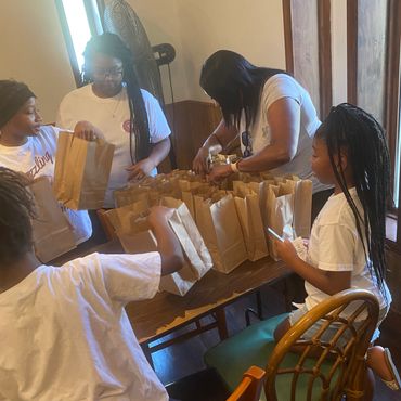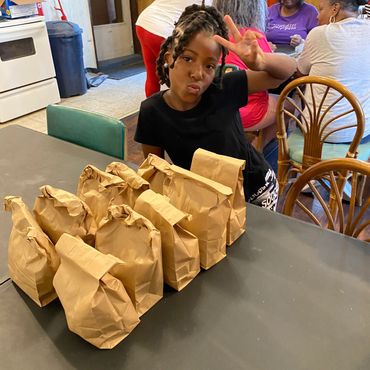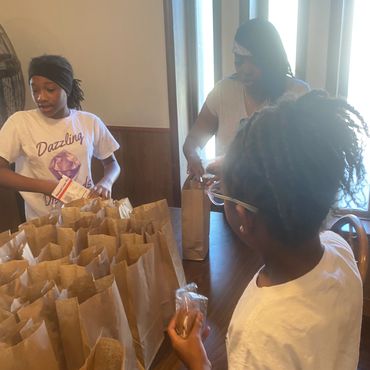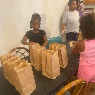 The girls were busy bagging up lunches, getting everything prepared as they got ready to go out and bless the community by serving those in need.